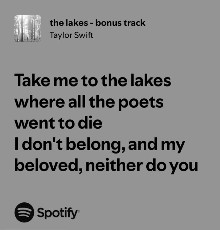 Swift, The Lakes şarkısının nakaratında bu yazarların yaşadıkları Göller Bölgesi’ne atıfta bulunuyor: “Take me to the lakes where all the poets went to die” (Beni tüm şairlerin ölmeye gittiği göllere götür.)
